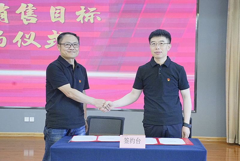 劉利鋒分別與銷售部、國際業(yè)務(wù)部簽訂2025年度銷售目標(biāo)責(zé)任書,勉勵銷售團(tuán)隊堅定市場信心,強(qiáng)化突圍決心,以承壓奮進(jìn)的拼搏姿態(tài)全力完成年度目標(biāo)。